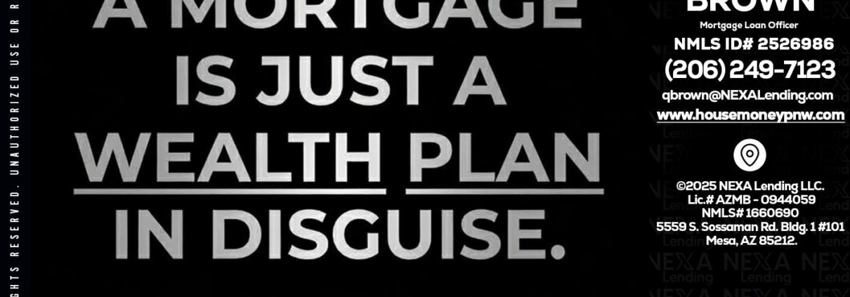 a mortgage is just - Quinton Brown -Mortgage Investment ConsultantHi, my name is Quinton Brown. I’m a Loan Officer with NEXA Lending LLC., offering personalized mortgage solutions, fast customized quotes, great rates and service with integrity.