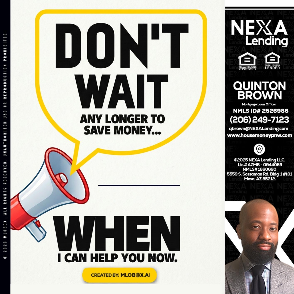 Hi, my name is Quinton Brown. I’m a Loan Officer with NEXA Lending LLC., offering personalized mortgage solutions, fast customized quotes, great rates and service with integrity.