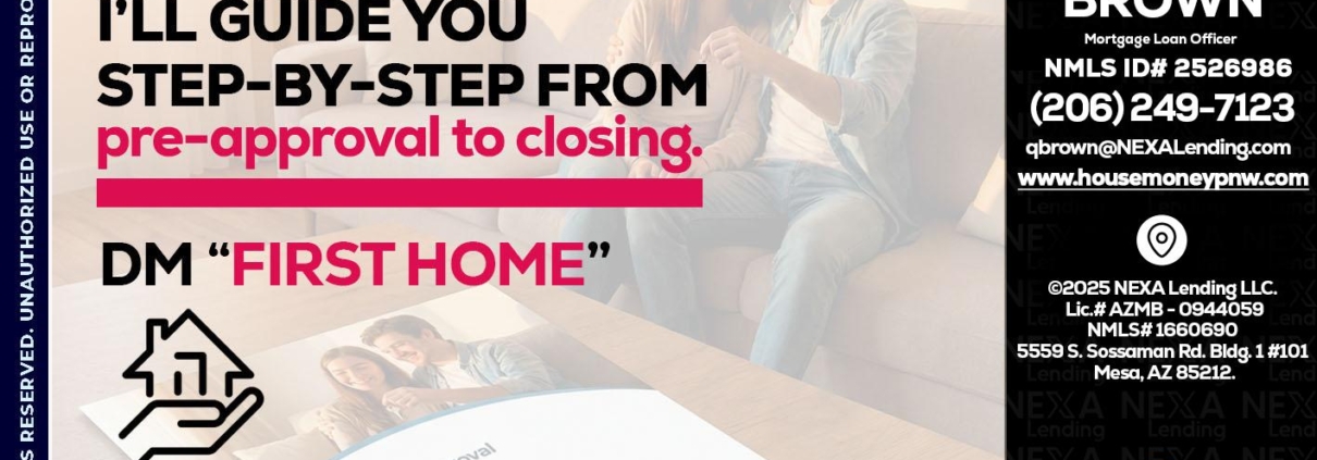 first time home buyer - Quinton Brown -Mortgage Investment ConsultantHi, my name is Quinton Brown. I’m a Loan Officer with NEXA Lending LLC., offering personalized mortgage solutions, fast customized quotes, great rates and service with integrity.