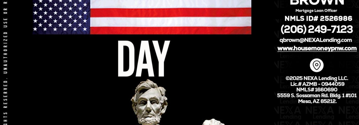 happy presidents day - Quinton Brown -Mortgage Investment ConsultantHi, my name is Quinton Brown. I’m a Loan Officer with NEXA Lending LLC., offering personalized mortgage solutions, fast customized quotes, great rates and service with integrity.