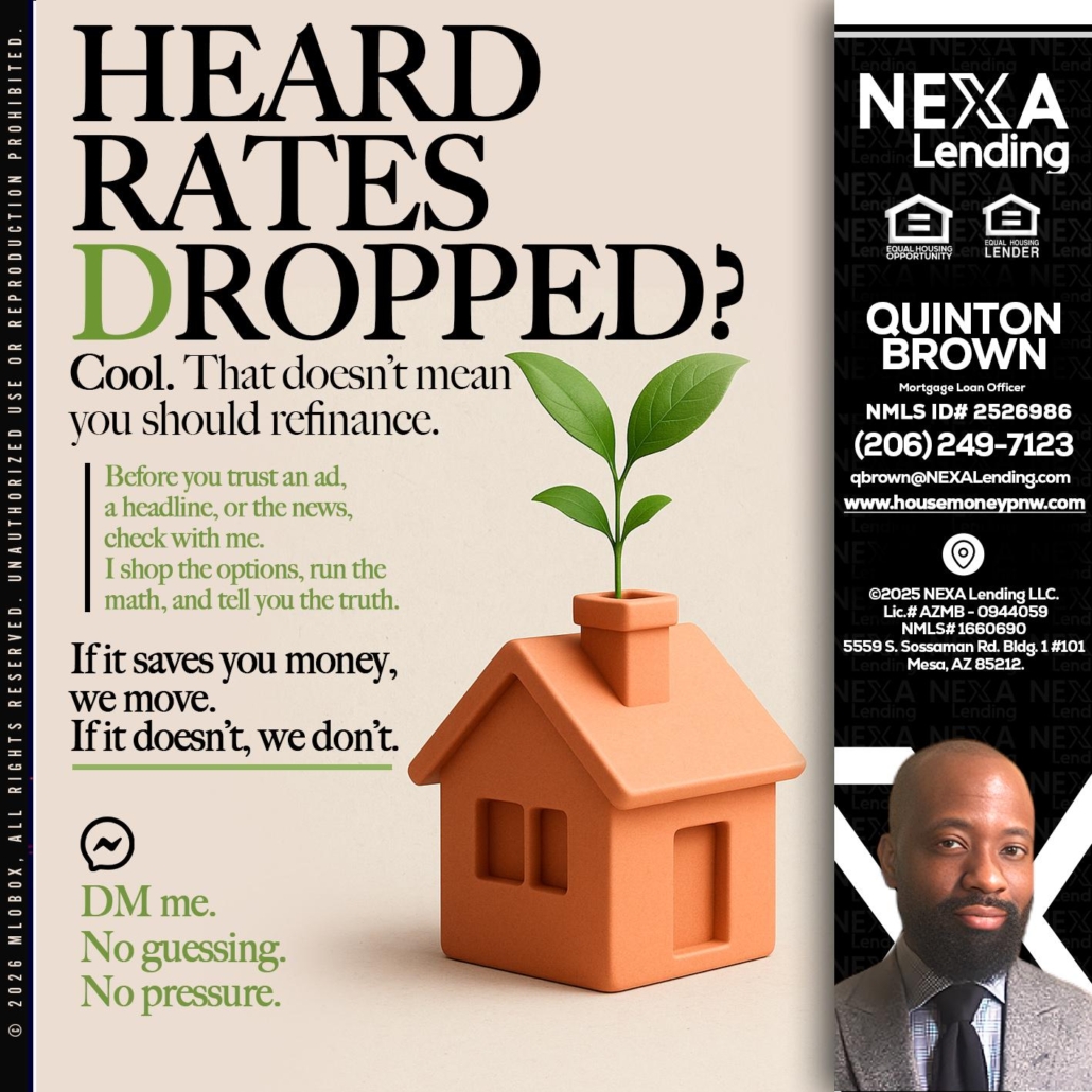 Hi, my name is Quinton Brown. I’m a Loan Officer with NEXA Lending LLC., offering personalized mortgage solutions, fast customized quotes, great rates and service with integrity.
