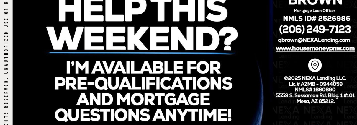 Hi, my name is Quinton Brown. I’m a Loan Officer with NEXA Lending LLC., offering personalized mortgage solutions, fast customized quotes, great rates and service with integrity.