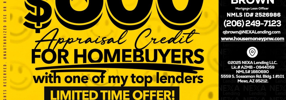 Hi, my name is Quinton Brown. I’m a Loan Officer with NEXA Lending LLC., offering personalized mortgage solutions, fast customized quotes, great rates and service with integrity.